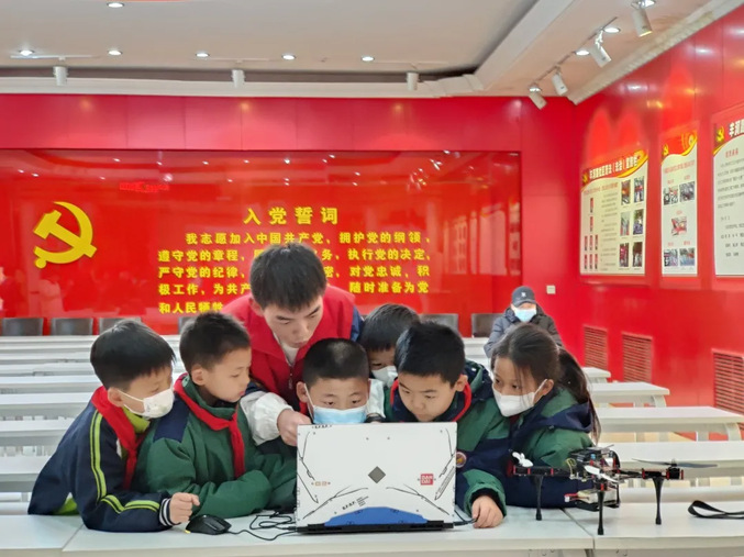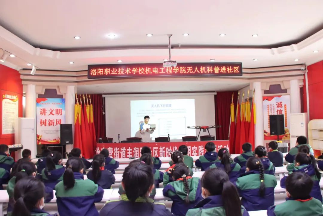 为丰富我院学生的课余文化生活,陶冶学生的情操,发展同学们的个性特长,营造独具特色的校园文化活动氛围,同时为培养少年儿童对科技文化的兴趣,培养孩子们的逻辑思维、沟通协作等综合能力。3月17日下午,我院组织无人机应用技术专业学生,前往洛阳第五十一中学小学部,组织开展了“将科技带入校园”无人机科普社团活动。