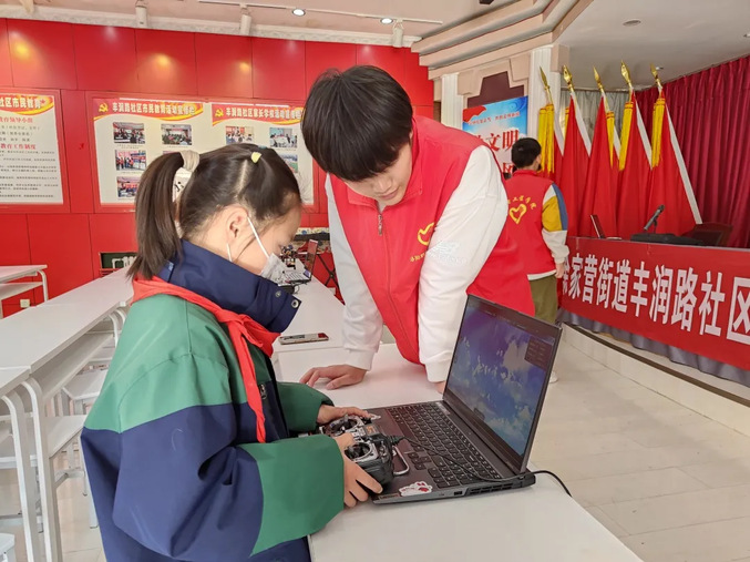随后,范永超逐步介绍了无人机的整体构造,向孩子们拓展无人机不为人知的复杂结构与特殊零件,并让小朋友们拿起遥控器进行实际的无人机仿真飞行训练,不仅加深了孩子们对飞行知识的了解,更激起了孩子们对天空探索的兴趣。当小朋友们模拟飞行,体验到无人机给自己带来快乐时,情不自禁地发出一遍又一遍赞叹,孩子们想象着自己是小小驾驶员,已然翱翔于云顶之上。
