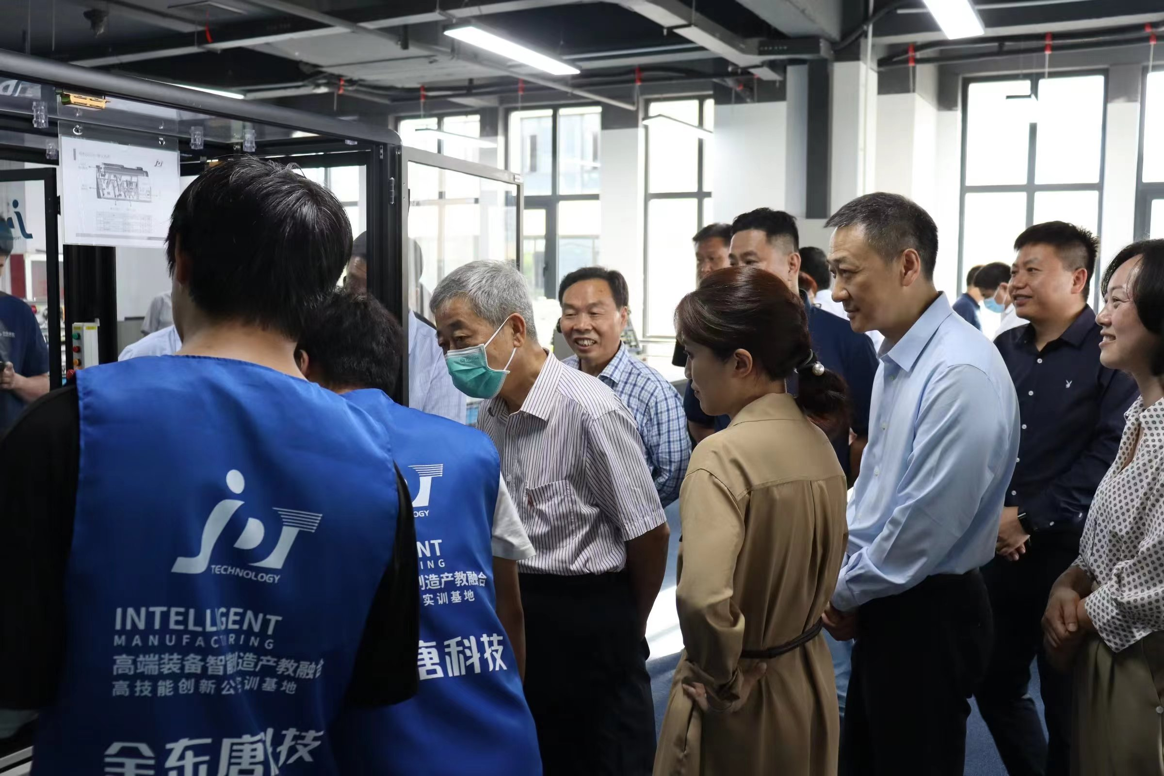 林树祥与为前教育部部长陈宝生在公共实训基地介绍实训设备
