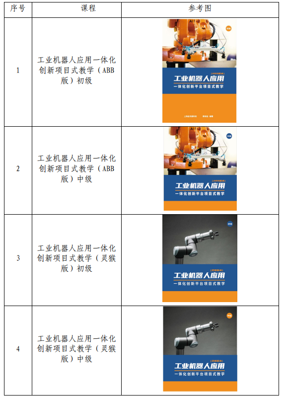 与上海金东唐科技有限公司联合了开发了工业机器人应用一体化创新项目式教学(ABB版)初级、工业机器人应用一体化创新项目式教学(ABB版)中级、工业机器人应用一体化创新项目式教学(灵猴版)初级、工业机器人应用一体化创新项目式教学(灵猴版)中级、可编程控制器项目式教程、一体化项目式教程工业机器人拆装等22套校企合作教材,用于对外学生实训、社会培训教材。