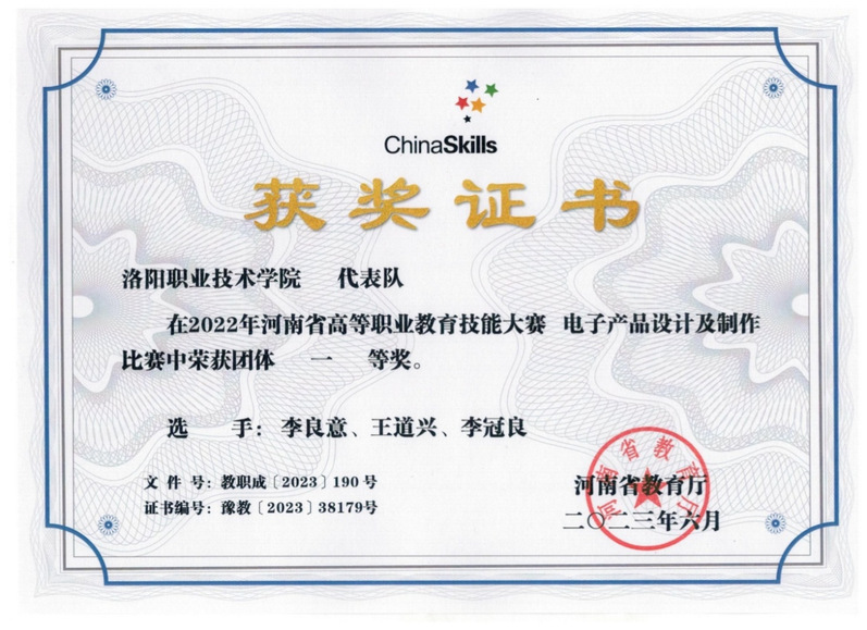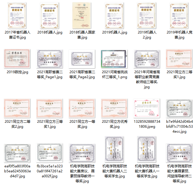 近年来我院学生在全国职业院校技能大赛中获得三等奖1项,河南省高等职业教育技能大赛中获得一等奖3项、二等奖7项、三等奖25项,全国大学生数学建模竞赛河南赛区获得一等奖1项、二等奖1项,中国国际大学生创新大赛河南赛区选拔赛二等奖2项、三等奖1项,“挑战杯”河南省大学生创业计划竞赛银奖1项、铜奖4项,“挑战杯”河南省大学生课外学术科技作品竞赛三等奖2项。我院一贯重视学生技能水平及创新创业能力的提升,积极探索“以赛促教、以赛促学”育人模式。竞赛成绩代表了我院师生精湛的职业技能和奋发向上的精神风貌,展示了学院的专业特色和办学实力。
